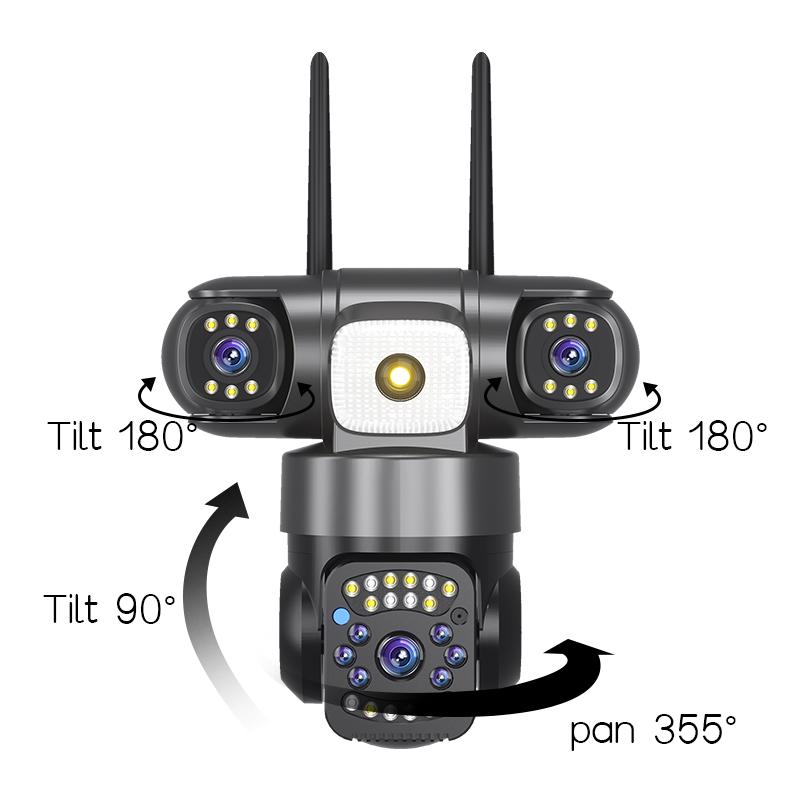 دوربین مینی اسپیددام ۳موتوره(هر دوربین یک موتور مجزا)3ptz, سیمکارتی,3 لنز,15مگاپیکسل V380 PRO CD36