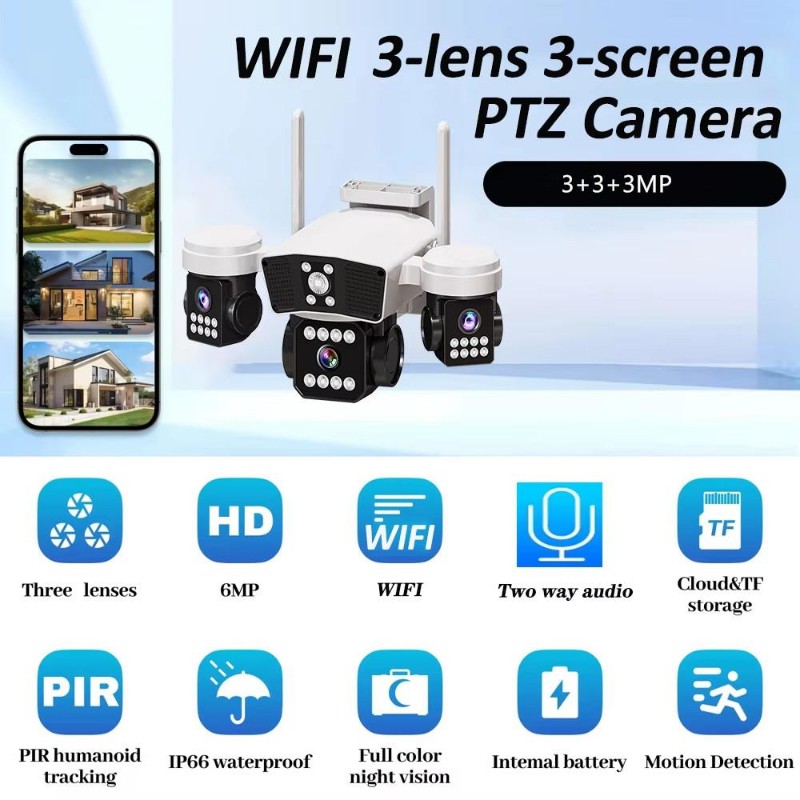دوربین مینی اسپیددام ۳موتوره(هر دوربین یک موتور مجزا)3ptz, سیمکارتی,سولار,خورشیدی,3 لنز,15مگاپیکسل V380 PRO CT36