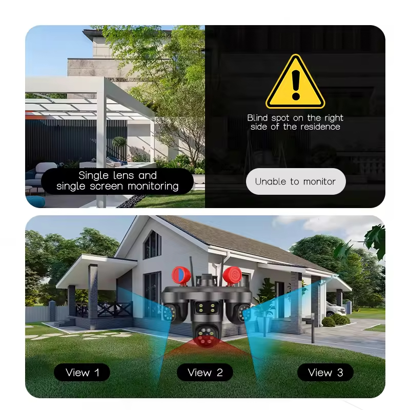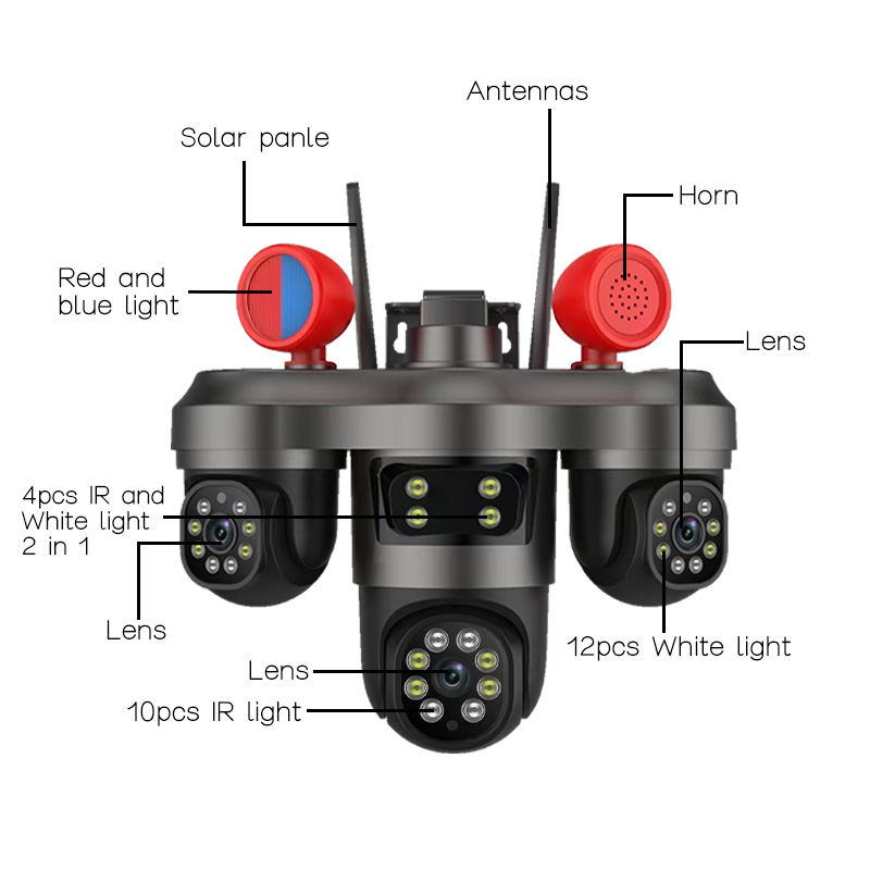 دوربین مینی اسپیددام ۳موتوره(هر دوربین یک موتور مجزا)3ptz, سیمکارتی,3 لنز,15مگاپیکسل V380 PRO CD36