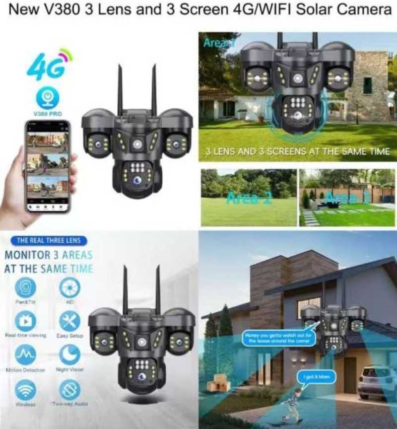 دوربین خورشیدی ۳ لنز وایرلس V380 مدل V380pro